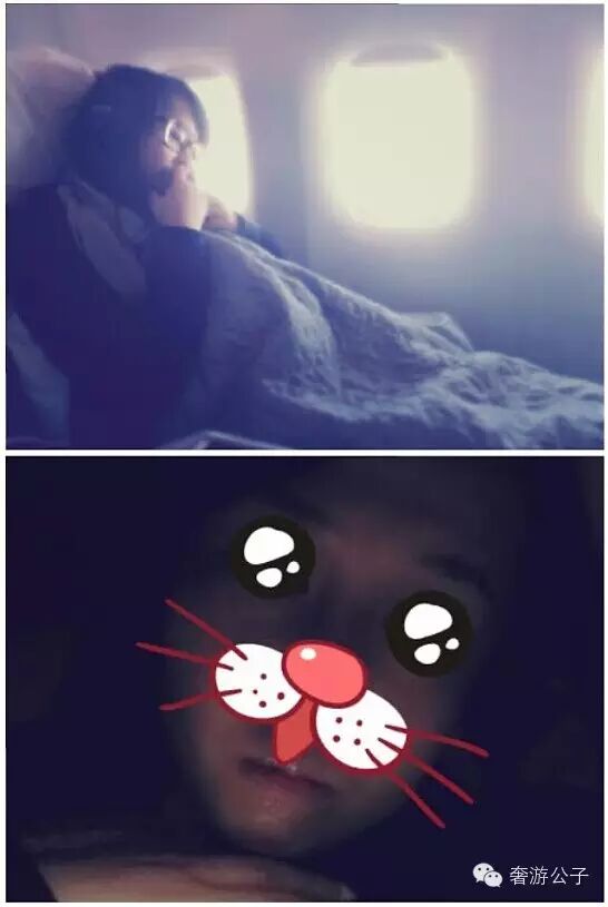 女友在飞机上敷面膜哦