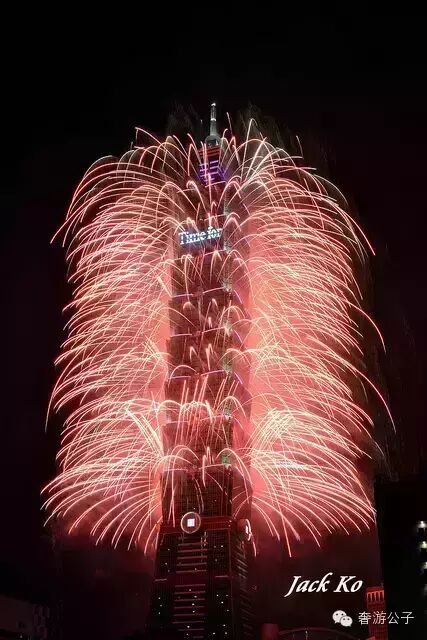 ▲新年倒计时101大楼都有火烧房子烟火表演,Jack Ko/摄
