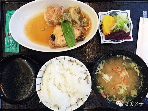 炖猪肉+烤三文鱼+味增汤+米饭