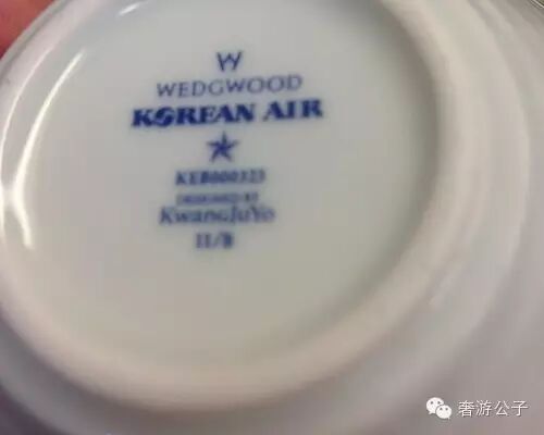头等舱那套餐具是由瓷器大咔品牌Wedgwood制作的
